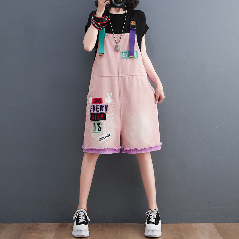 Large Size New Fashion Embroidered Denim Overalls Shorts Women